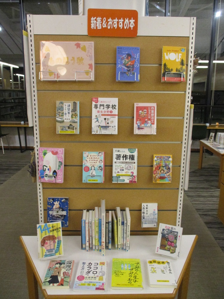 ティーンズコーナーでも、『もの思う秋』、『生きている今を考える』などのテーマで「新着&おすすめ本」を展示しています。