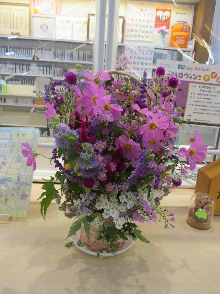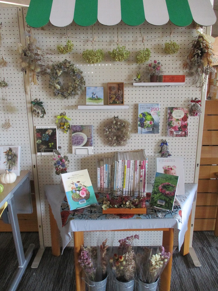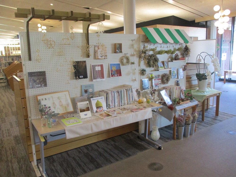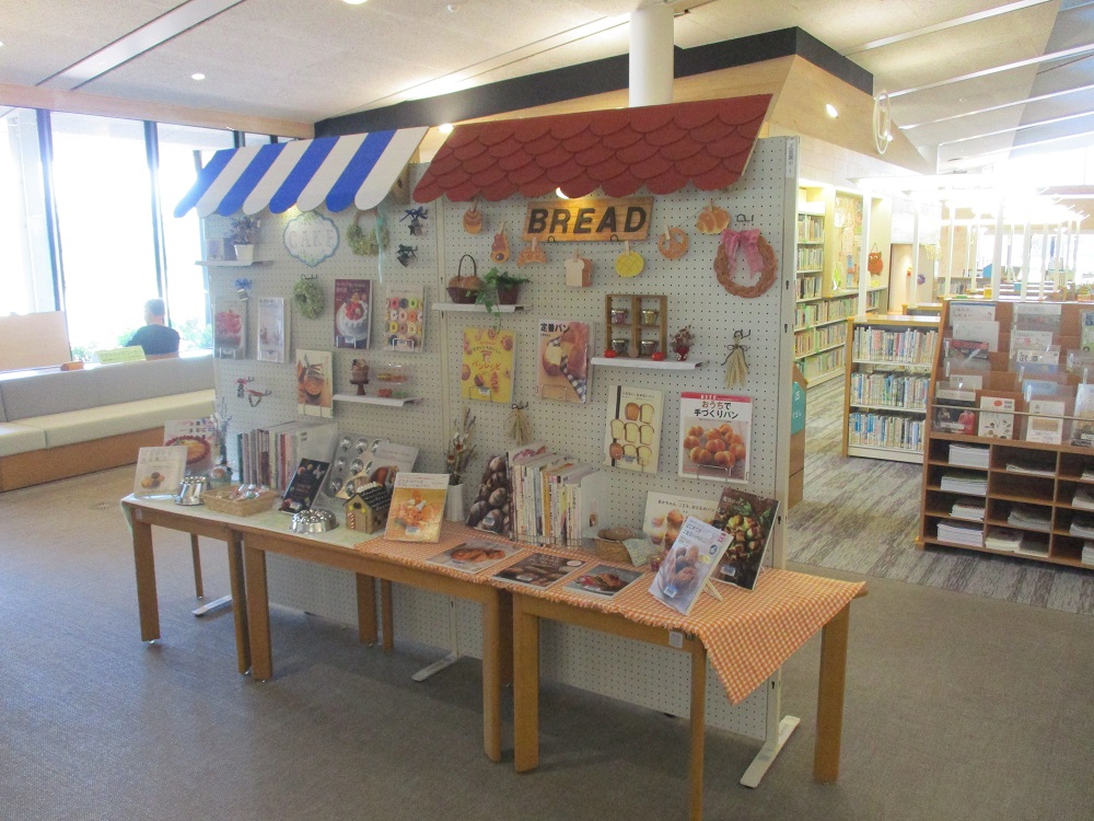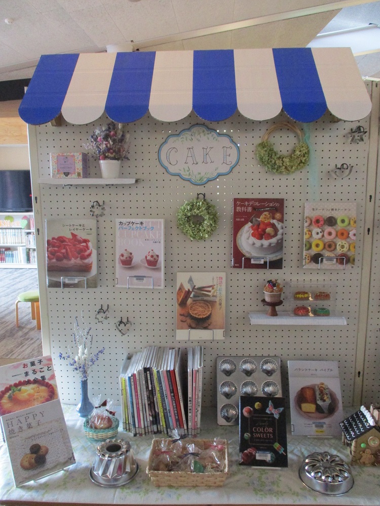 現在、図書館にも素敵なお店が並んでいます。ケーキ屋さん、パン屋さん、花屋さん、雑貨屋さん・・・。お店で品物を選ぶように、本を手に取っていただけます。どの本もおうち時間を豊かにしてくれるものばかりです。