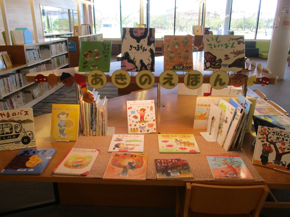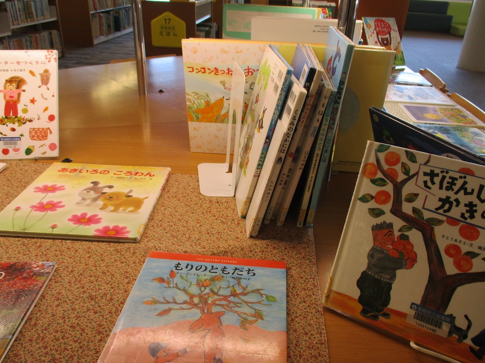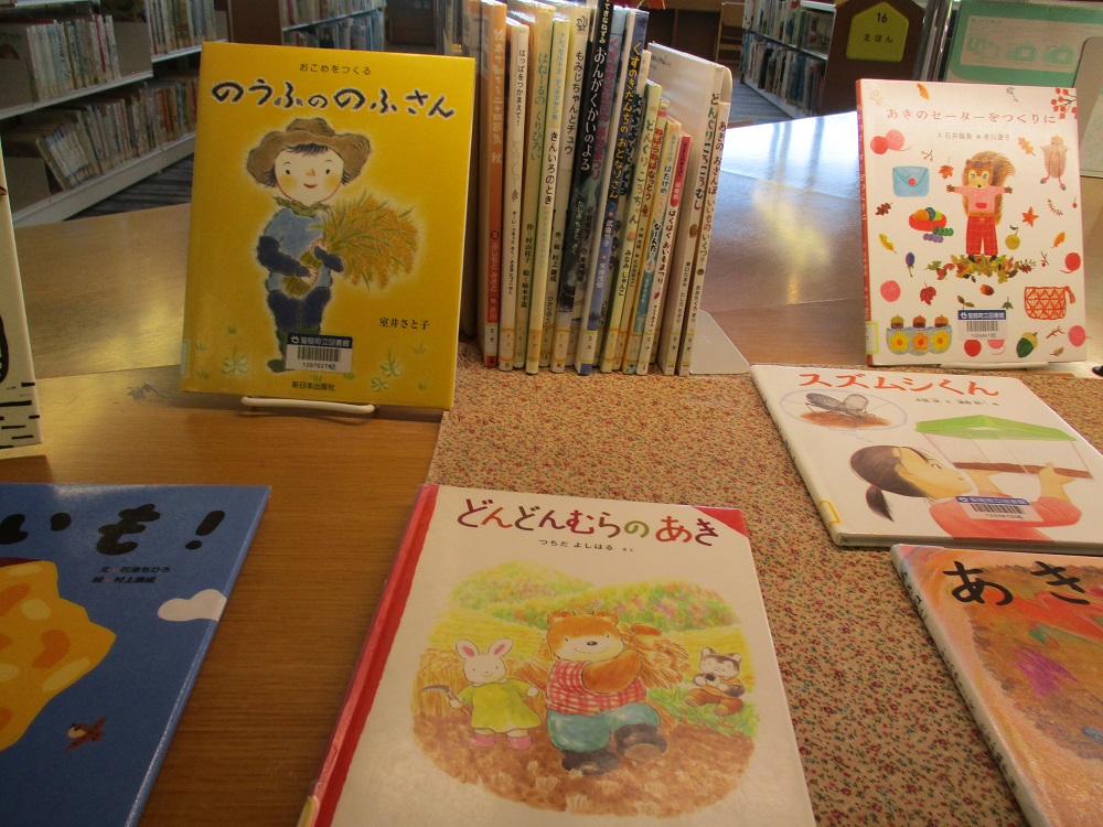 秋祭りや、紅葉、おいもや栗など秋の味覚に関する本などを集めました。