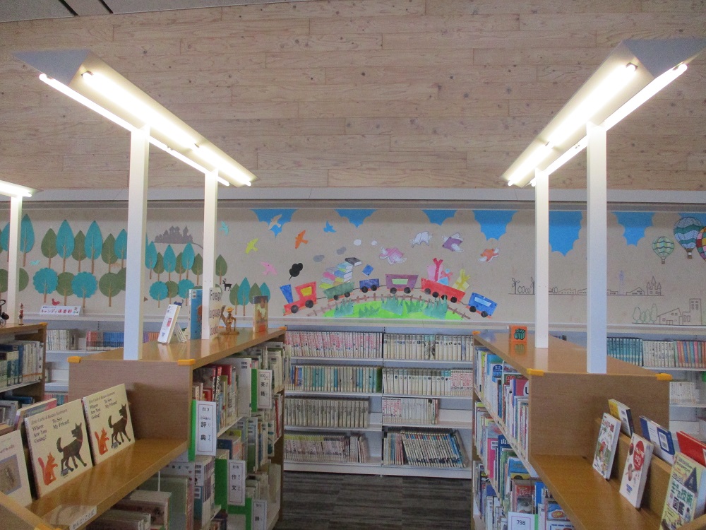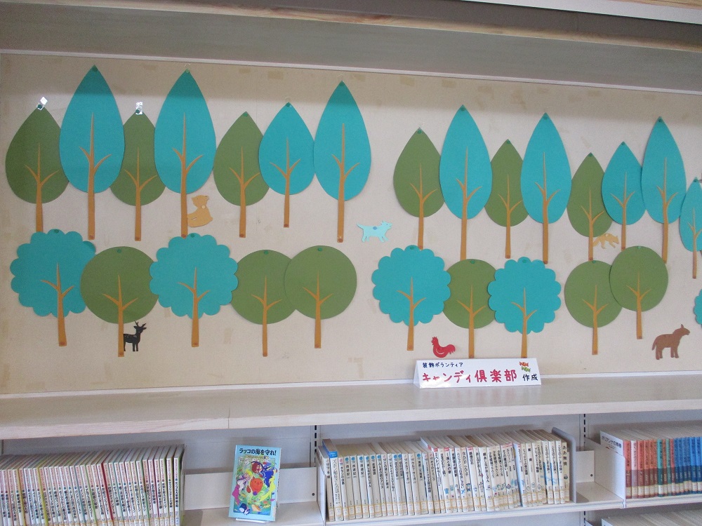 児童コーナーの壁面が、壁面装飾ボランティア「キャンディ俱楽部」の皆さんの手により、新しいデザインのものになりました。